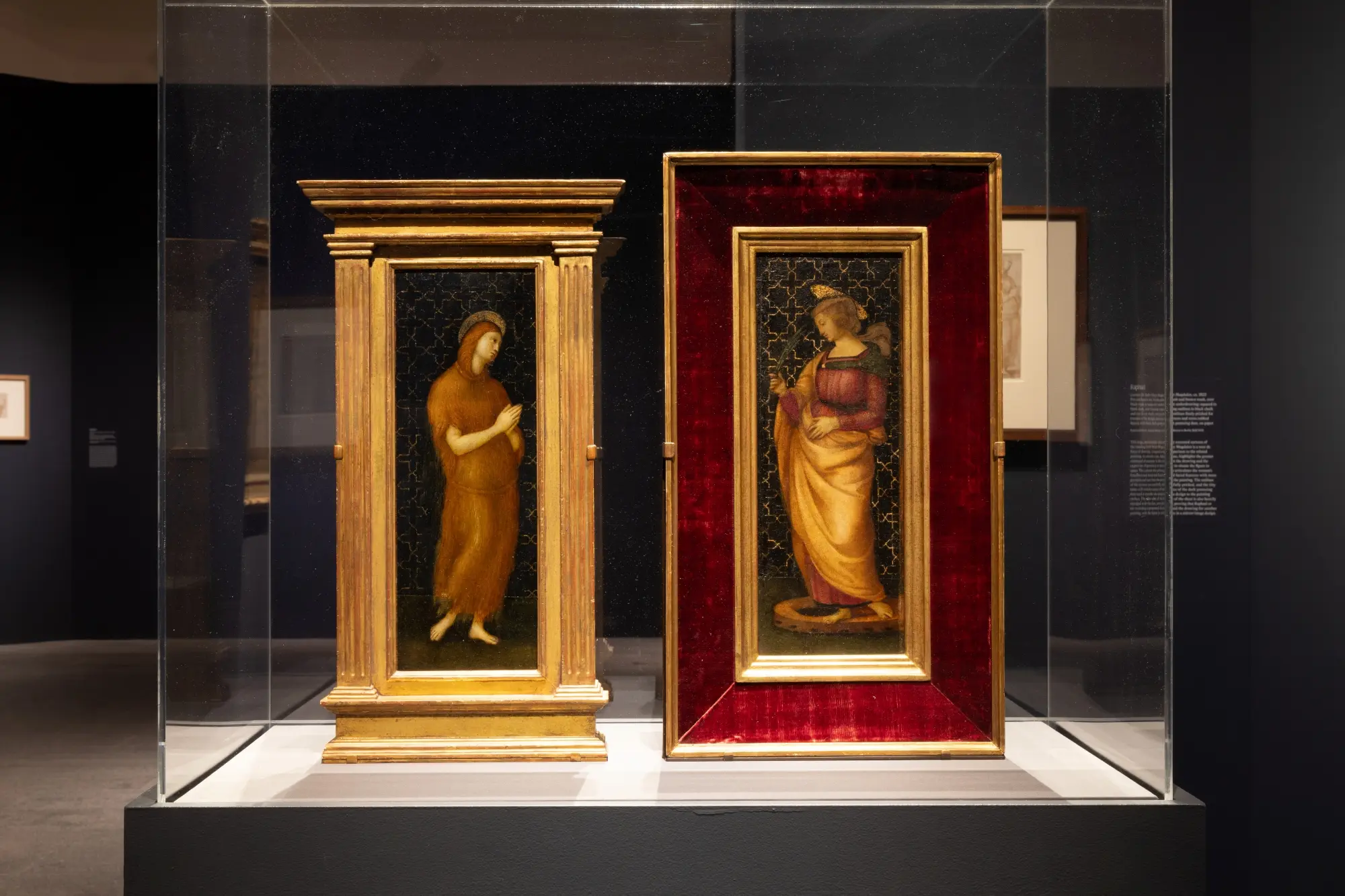 Il percorso espositivo inizia con i primi lavori di Raffaello a Città di Castello e nelle regioni circostanti, dove studiò sotto Pietro Perugino. Qui sono esposti i primi disegni e le prime pale d’altare, tra cui Colonna Altarpiece, presentata per la prima volta nella sua interezza dopo secoli di dispersione dei singoli pannelli. I disegni preparatori, in gesso nero, penna e inchiostro, mostrano la meticolosità tecnica e la capacità di Raffaello di pianificare ogni dettaglio, rivelando un artista già maturo nella capacità di fondere narrativa religiosa e armonia visiva.